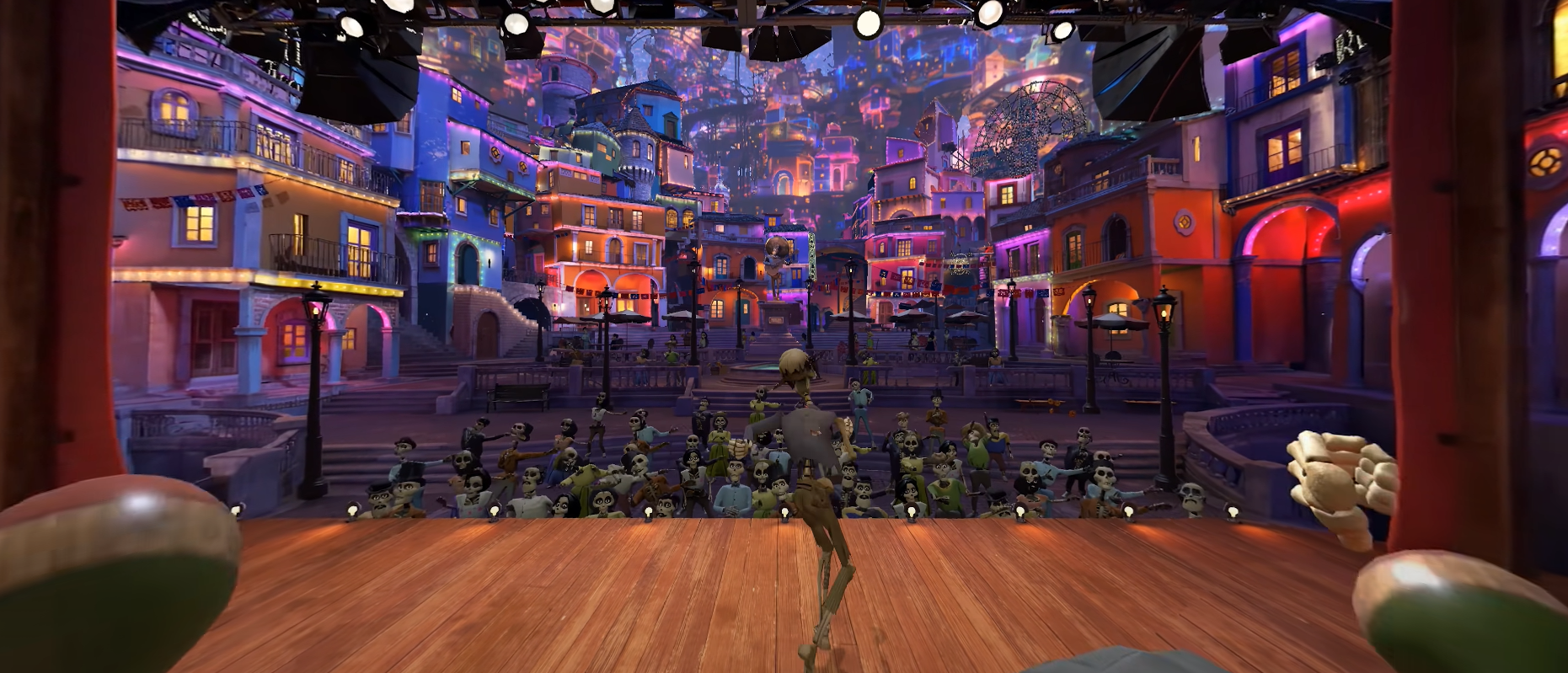 위처럼 영화 '코코' 속에 등장했던 배경이 그대로 VR 게임을 통해 재현되어 있습니다.